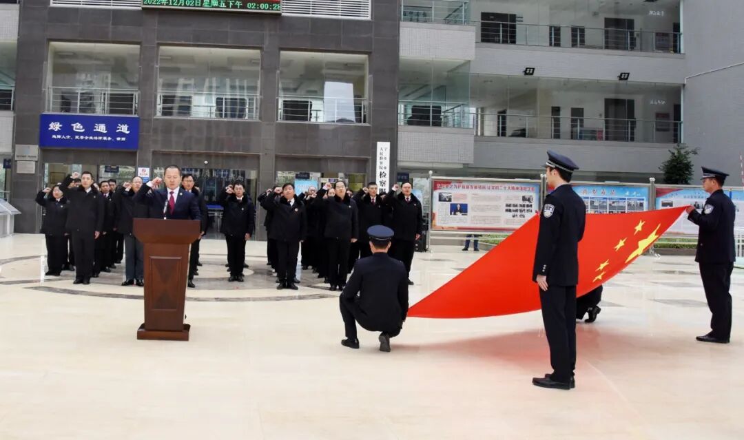 12月2日,在第九个“国家宪法日”即将到来之际,为深入学习宣传贯彻党的二十大精神,推动全面贯彻实施宪法,切实增强宪法意识,宁乡市检察院组织全体干警举行2022年宪法宣誓仪式,院党组书记、检察长刘文广领誓并在仪式上讲话。