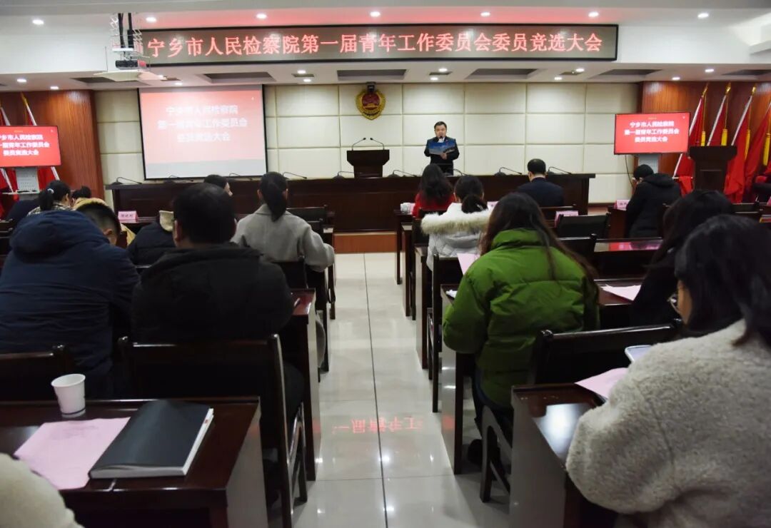 为充分调动全院青年检察人员的工作积极性,搭建展示青春风采的平台,助力宁检青年更好地发展,2月9日上午,宁乡市检察院举行青年工作委员会(简称“青工委”)竞选大会。会议邀请到共青团宁乡市委书记颜晓明,长沙市检察院青年工作委员会主任、第四检察部副主任姜秦秦莅临指导。宁乡市检察院全体领导班子成员、全体检察人员参加会议。